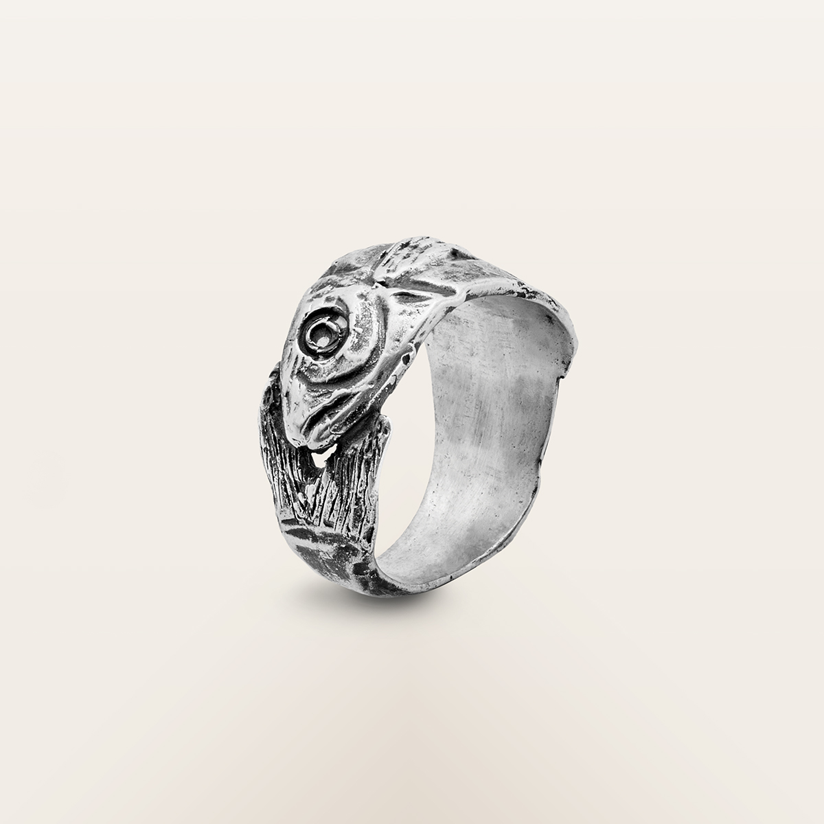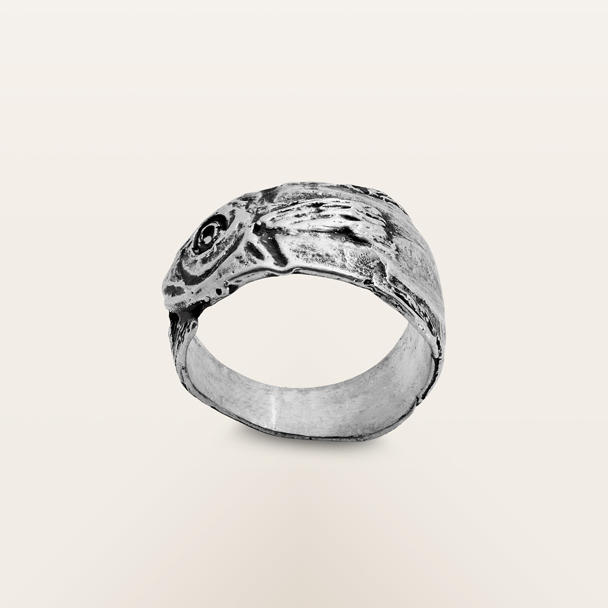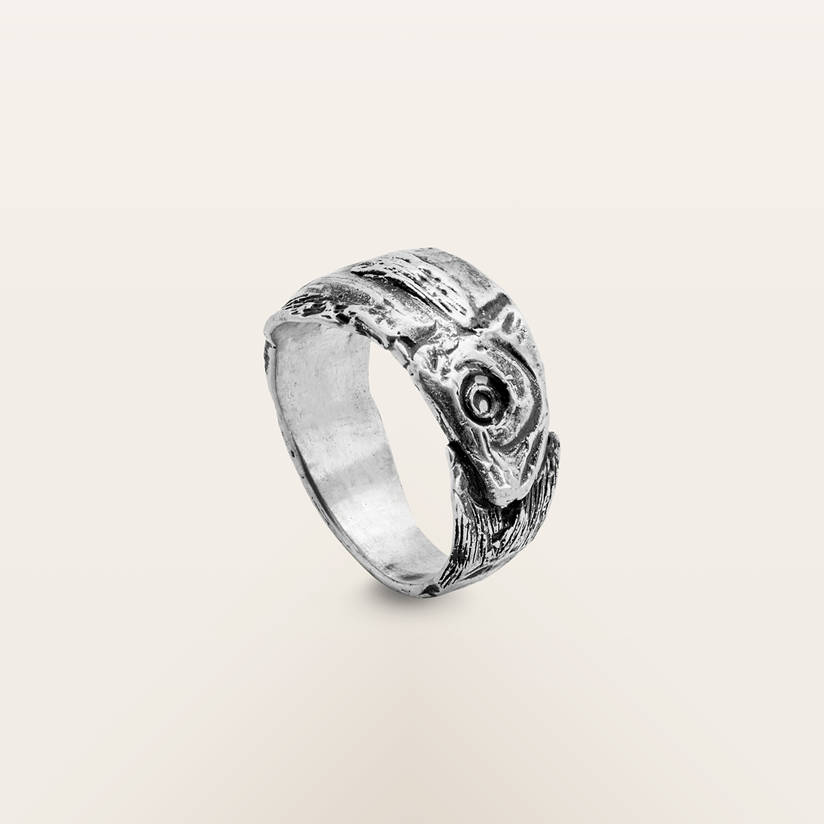 A 925 silver ring capturing the sinuous movement of a fish coiled around the finger. Its clean lines make it light and playful, perfect for those seeking a summer-inspired, informal touch. Ideal for holiday wear or for anyone who loves a nod to the sea in everyday life.